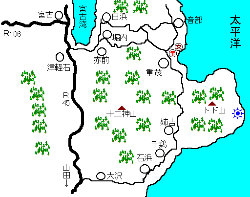T字路を右に行き、豊間根へ、R45を宮古向けて、一周する、
